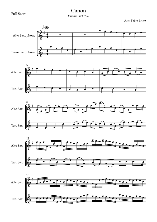Canon - Johann Pachelbel (Wedding/Reduced Version) for Alto Saxophone & Tenor Saxophone Duo (arr. Fabio Britto)
