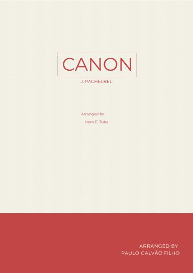 Instrumental Duet Horn,Instrumental Duet,Tuba - Level 1 - Digital Download SKU: A0.710127 Composed by Johann Pachelbel. Arranged by Paulo Galvao Filho. Baroque. Score and parts. 7 pages. Paulo Galvao Filho #6363737. Published by Paulo Galvao Filho (A0.710127). This product was created by a member of ArrangeMe, Hal Leonard’s global self-publishing community of independent composers, arrangers, and songwriters. ArrangeMe allows for the publication of unique arrangements of both popular titles and original compositions from a wide variety of voices and backgrounds. About Digital Downloads Digital Downloads are downloadable sheet music files that can be viewed directly on your computer, tablet or mobile device. Once you download your digital sheet music, you can view and print it at home, school, or anywhere you want to make music, and you don’t have to be connected to the internet. Just purchase, download and play! PLEASE NOTE: Your Digital Download will have a watermark at the bottom of each page that will include your name, purchase date and number of copies purchased. You are only authorized to print the number of copies that you have purchased. You may not digitally distribute or print more copies than purchased for use (i.e., you may not print or digitally distribute individual copies to friends or students).