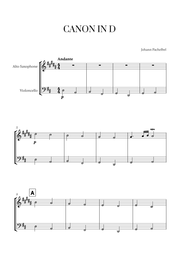 Canon in D (for Alto Sax and Cello) (arr. Cadenza Editions)