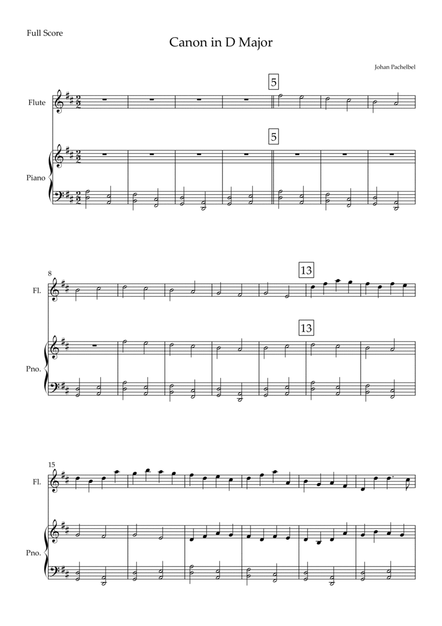 Canon in D Major (Johann Pachelbel) for Flute Solo and Piano Accompaniment (arr. Fabio Britto)
