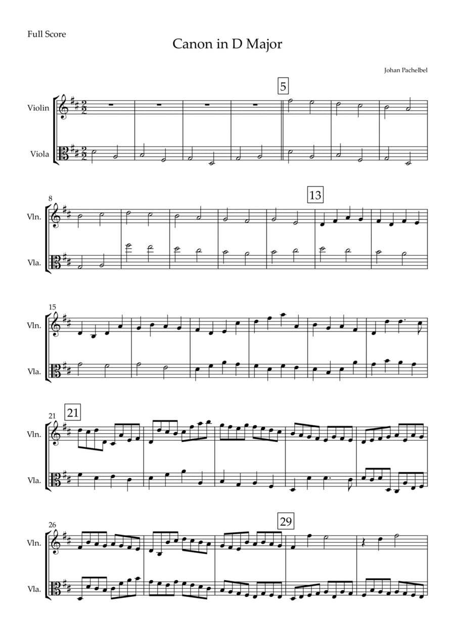 Canon in D Major (Johann Pachelbel) for Violin & Viola Duo (arr. Fabio Britto)