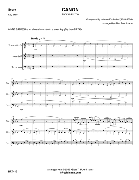 CANON (Pachelbel) for BRASS TRIO (unaccompanied) (arr. Glen Poehlmann)
