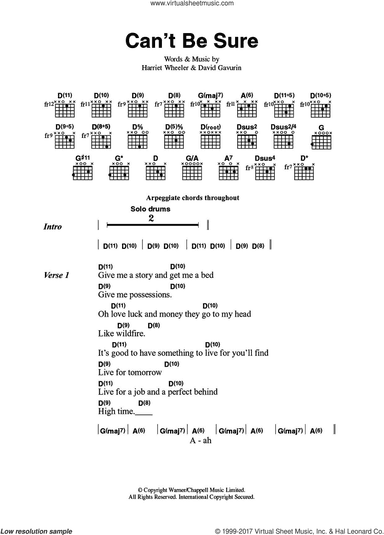 Digital sheet music for guitar (chords)NOTE: guitar chords only, lyrics and melody may be included (please, check the first page above before to buy this item to see what's included)Publisher: Hal LeonardContributors to this music title:David Gavurin (writer)Harriet Wheeler (writer)This item includes: PDF (digital sheet music to download and print)Instrumentation:guitar (chords)Skill Level:intermediateGenre:rockPages:3