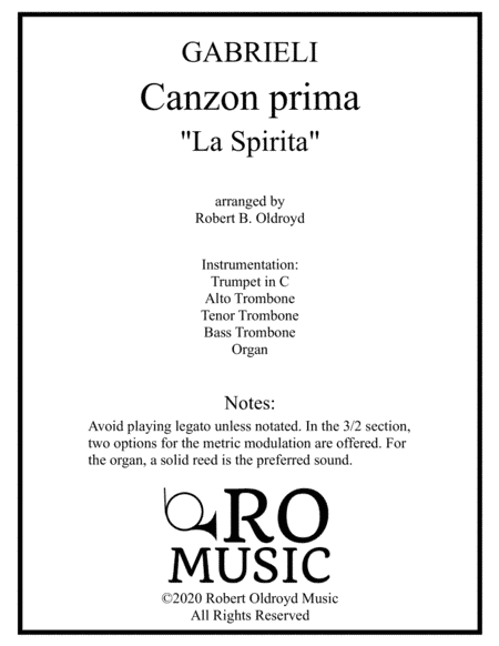 Canzona per Sonare No 1 for Brass Quartet and Organ (arr. Robert B. Oldroyd)