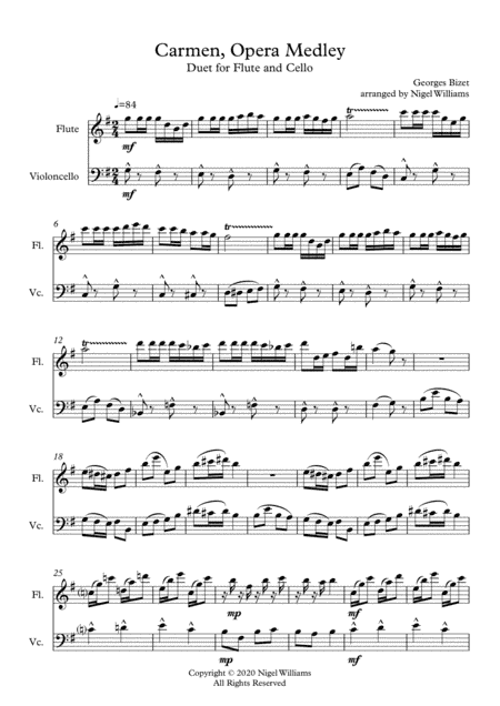 Carmen, Opera Medley. Duet for Flute and Cello (arr. Nigel Williams)