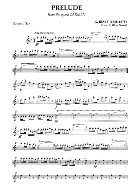 Carmen Overture (Prelude) for Saxophone Quartet (arr. Diego Marani)