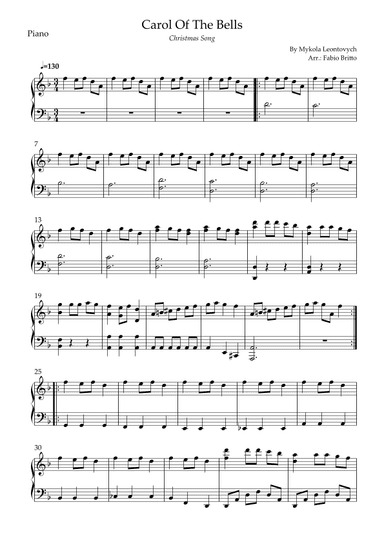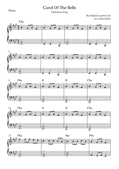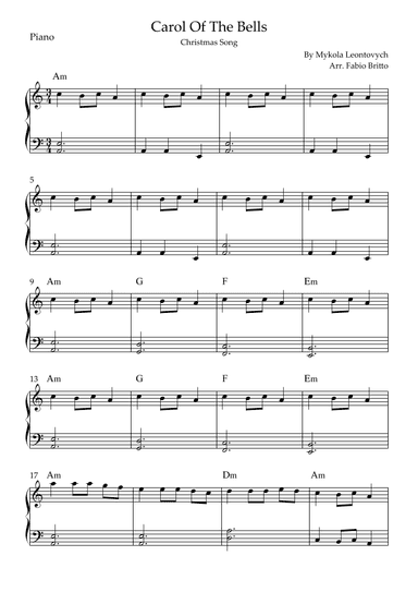 Carol of the Bells (Christmas Song) for Easy Piano Solo (arr. Fabio Britto)