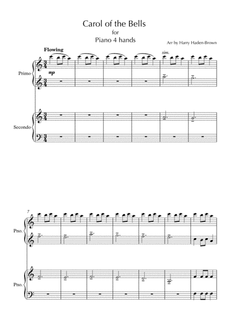 Carol of the Bells Easy Piano Duet (arr. Harry Haden-Brown)
