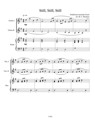 String Ensemble Violin - Level 3 - Digital Download SKU: A0.813269 Composed by Mykola Leontovych. Arranged by Regis Bookshar. 20th Century,A Cappella,Christmas,Concert,Standards,World. Score and parts. 16 pages. Regis Bookshar #6167879. Published by Regis Bookshar (A0.813269). Violin Sextet - Intermediate - Digital Download. This selection, "Carol of the Bells", also known as "Ring, Christmas Bells", is suitable for high school and college students and is perfect for Christmas concerts and church services. "Carol of the Bells" was written by the Ukrainian composer Mykola Leontovych in 1914 with lyrics by Peter J. Wilhousky. The song is based on the Ukrainian folk chant "Shchedryk", a New Year's song, known in English as "The Little Swallow", and utilizes a four-note ostinato which brings to mind the ringing of bells. Originally intended to be sung a capella by a mixed four-part choir it has since been recorded into over 150 versions and re-arrangements for various vocal and instrumental compositions. One version, "Ring, Christmas Bells", an English-language variant with Nativity-based lyrics, was written by Minna Louise Hohman in 1947. Regis Bookshar has now arranged the music for a Violin Sextet. Included are a score and a complete set of parts (16 pages). In addition to this version for 6 Violins, many other arrangements of this selection are also available for a variety of instrumental ensembles, including Quintets, Sextets, Septets and Octets, as well as numerous other selections in a wide variety of styles. I would encourage you to search for other arrangements by Regis Bookshar. You may find something else which might interest you as well. I'm certain that this exciting arrangement will entertain both performers and audiences alike for years to come. This product was created by a member of ArrangeMe, Hal Leonard’s global self-publishing community of independent composers, arrangers, and songwriters. ArrangeMe allows for the publication of unique arrangements of both popular titles and original compositions from a wide variety of voices and backgrounds. About Digital Downloads Digital Downloads are downloadable sheet music files that can be viewed directly on your computer, tablet or mobile device. Once you download your digital sheet music, you can view and print it at home, school, or anywhere you want to make music, and you don’t have to be connected to the internet. Just purchase, download and play! PLEASE NOTE: Your Digital Download will have a watermark at the bottom of each page that will include your name, purchase date and number of copies purchased. You are only authorized to print the number of copies that you have purchased. You may not digitally distribute or print more copies than purchased for use (i.e., you may not print or digitally distribute individual copies to friends or students).