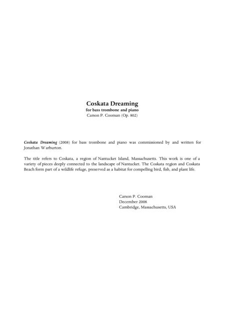 Carson Cooman - Coskata Dreaming (2008) for bass trombone and piano