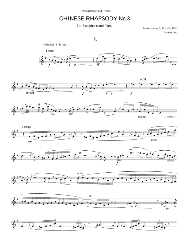 CHINESE RHAPSODY No.3 For Saxophone and Piano, Op.46 (1988) [Piano score]
