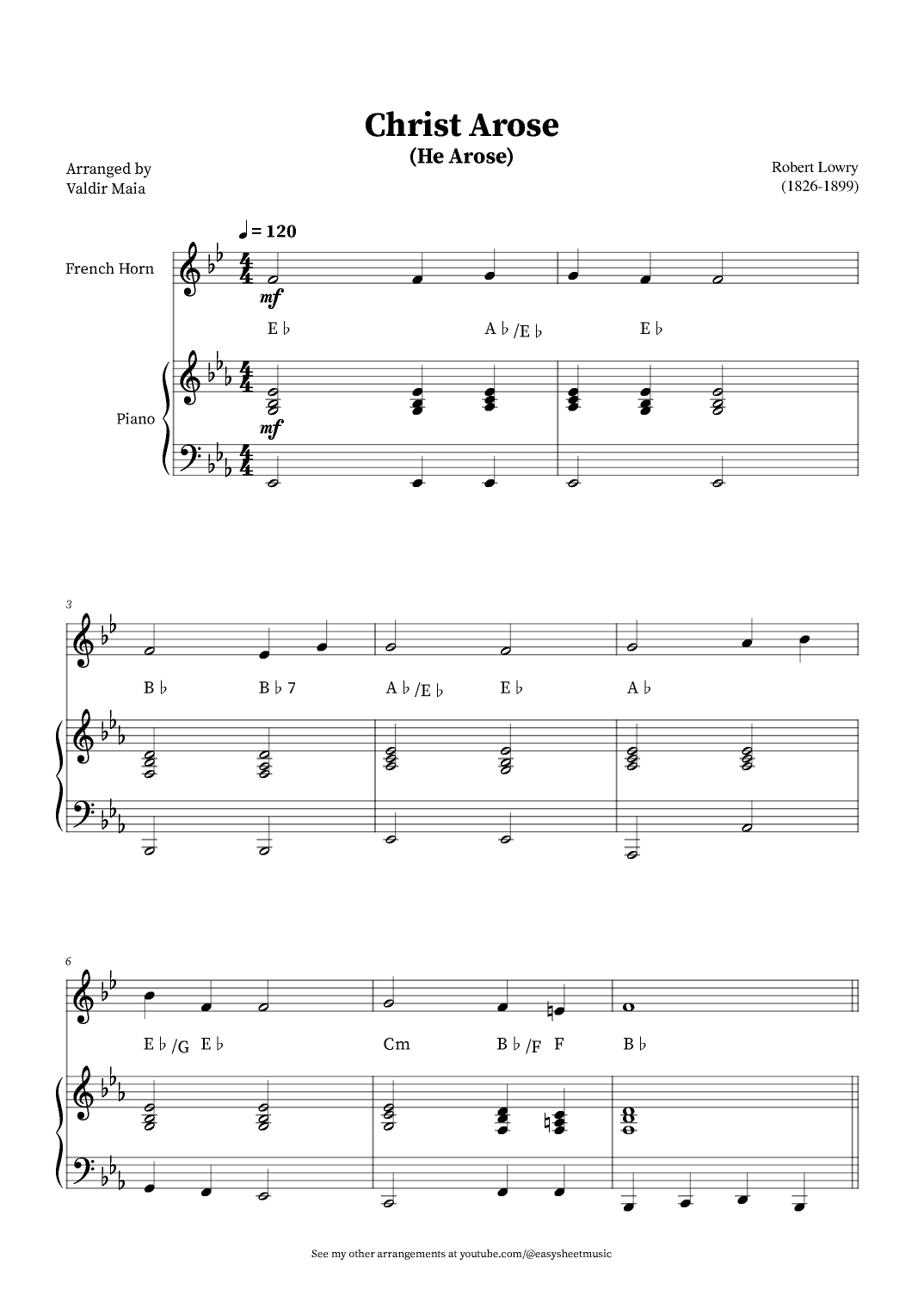 Christ Arose (He Arose) -  French Horn and Piano (with chords) (arr. Valdir Maia)