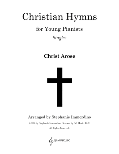 Easy Piano - Level 1 - Digital Download SKU: A0.887957 Composed by Robert Lowry. Arranged by Stephanie Immordino. Christian,Concert,Easter,Sacred. Score. 3 pages. SJI Music, LLC #6083447. Published by SJI Music, LLC (A0.887957). Christ Arose is part of the Christian Hymns for Young Pianists series by musical artist Stephanie Immordino. In this edition, the early elementary student is challenged to change hand position to accommodate the range of the melody. The song also incorporates both dotted rhythms and eight notes, and includes lyrics to facilitate singing. . This product was created by a member of ArrangeMe, Hal Leonard’s global self-publishing community of independent composers, arrangers, and songwriters. ArrangeMe allows for the publication of unique arrangements of both popular titles and original compositions from a wide variety of voices and backgrounds. About Digital Downloads Digital Downloads are downloadable sheet music files that can be viewed directly on your computer, tablet or mobile device. Once you download your digital sheet music, you can view and print it at home, school, or anywhere you want to make music, and you don’t have to be connected to the internet. Just purchase, download and play! PLEASE NOTE: Your Digital Download will have a watermark at the bottom of each page that will include your name, purchase date and number of copies purchased. You are only authorized to print the number of copies that you have purchased. You may not digitally distribute or print more copies than purchased for use (i.e., you may not print or digitally distribute individual copies to friends or students).