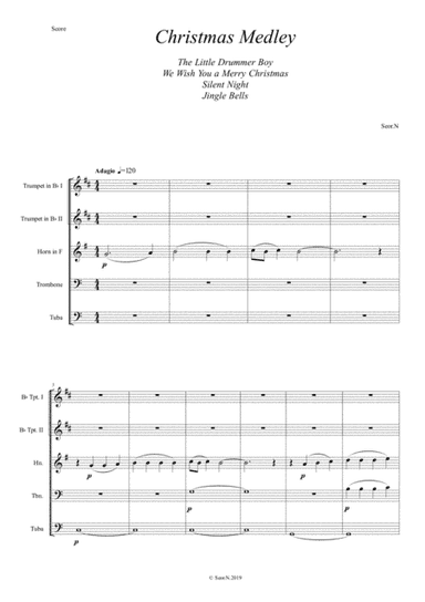 Brass quintet - Grade 3 - Digital Download SKU: DX.145509 Composed by Various. Arranged by Dana F. Everson. Sacred instrumental music. Key of Bb, G. Christmas. Score and parts. 18 pages. David E. Smith - Digital Sheet Music #145509. Published by David E. Smith - Digital Sheet Music (DX.145509). A brass quintet with opt. Trumpet for horn and baritone TC. It begins with fanfare motifs of the tune and then breaks into the hymn adding more parts as it progresses. It continues with a Q&A type of dialog between the lower, then upper voices. The second setion in a different key is reminiscent of the opening only this time in the middle voices and again moves in a Q&A type of dialog. Again modulating to a new key the theme is bounced around with rhythmical interest only to finalize in strong chordal patterns and ending on a bold declamation. About Digital Downloads Digital Downloads are downloadable sheet music files that can be viewed directly on your computer, tablet or mobile device. Once you download your digital sheet music, you can view and print it at home, school, or anywhere you want to make music, and you don’t have to be connected to the internet. Just purchase, download and play! PLEASE NOTE: Your Digital Download will have a watermark at the bottom of each page that will include your name, purchase date and number of copies purchased. You are only authorized to print the number of copies that you have purchased. You may not digitally distribute or print more copies than purchased for use (i.e., you may not print or digitally distribute individual copies to friends or students).