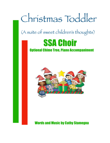 Choral Choir (SSA) - Level 4 - Digital Download SKU: A0.780428 Composed by Cathy Stamegna. Arranged by Cathy Stamegna. Children,Christmas,Contemporary,Contest,Festival,Pop. Octavo. 11 pages. Cathy Stamegna #4885807. Published by Cathy Stamegna (A0.780428). Christmas Toddler (SSA Choir, Optional Chime Tree, Piano Accompaniment). A four-minute suite portraying a humorous glimpse of Christmas through the eyes of a toddler: Dear Santa, could you come through the front door? You make such a mess in the fireplace! Other Vocal Arrangements and Piano Accompaniment Track available. This product was created by a member of ArrangeMe, Hal Leonard’s global self-publishing community of independent composers, arrangers, and songwriters. ArrangeMe allows for the publication of unique arrangements of both popular titles and original compositions from a wide variety of voices and backgrounds. About Digital Downloads Digital Downloads are downloadable sheet music files that can be viewed directly on your computer, tablet or mobile device. Once you download your digital sheet music, you can view and print it at home, school, or anywhere you want to make music, and you don’t have to be connected to the internet. Just purchase, download and play! PLEASE NOTE: Your Digital Download will have a watermark at the bottom of each page that will include your name, purchase date and number of copies purchased. You are only authorized to print the number of copies that you have purchased. You may not digitally distribute or print more copies than purchased for use (i.e., you may not print or digitally distribute individual copies to friends or students).