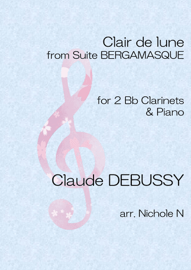 Small Ensemble Clarinet,Piano Accompaniment - Level 4 - Digital Download SKU: A0.1045157 Composed by Claude Debussy. Arranged by Nichole N. Classical,Romantic Period. Score and parts. 17 pages. Nichole N #649731. Published by Nichole N (A0.1045157). Arranged for 2 Bb Clarinets and Piano. This product was created by a member of ArrangeMe, Hal Leonard’s global self-publishing community of independent composers, arrangers, and songwriters. ArrangeMe allows for the publication of unique arrangements of both popular titles and original compositions from a wide variety of voices and backgrounds. About Digital Downloads Digital Downloads are downloadable sheet music files that can be viewed directly on your computer, tablet or mobile device. Once you download your digital sheet music, you can view and print it at home, school, or anywhere you want to make music, and you don’t have to be connected to the internet. Just purchase, download and play! PLEASE NOTE: Your Digital Download will have a watermark at the bottom of each page that will include your name, purchase date and number of copies purchased. You are only authorized to print the number of copies that you have purchased. You may not digitally distribute or print more copies than purchased for use (i.e., you may not print or digitally distribute individual copies to friends or students).
