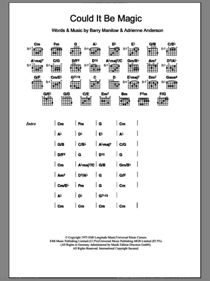 Digital sheet music for guitar (chords)NOTE: guitar chords only, lyrics and melody may be included (please, check the first page above before to buy this item to see what's included)Publisher: Hal LeonardContributors to this music title:Adrienne Anderson (writer)This item includes: PDF (digital sheet music to download and print)Instrumentation:guitar (chords)Skill Level:intermediateGenre:popPages:4