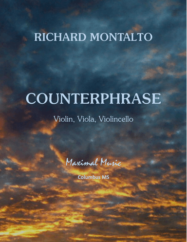 String Trio Cello,Viola,Violin - Level 5 - Digital Download SKU: A0.597698 Composed by Richard Montalto. Concert,Contemporary. 8 pages. Maximal Music #6573629. Published by Maximal Music (A0.597698). A short, tonal work for string trio, composed using stochastic modeling.Performance time: 2' This product was created by a member of ArrangeMe, Hal Leonard’s global self-publishing community of independent composers, arrangers, and songwriters. ArrangeMe allows for the publication of unique arrangements of both popular titles and original compositions from a wide variety of voices and backgrounds. About Digital Downloads Digital Downloads are downloadable sheet music files that can be viewed directly on your computer, tablet or mobile device. Once you download your digital sheet music, you can view and print it at home, school, or anywhere you want to make music, and you don’t have to be connected to the internet. Just purchase, download and play! PLEASE NOTE: Your Digital Download will have a watermark at the bottom of each page that will include your name, purchase date and number of copies purchased. You are only authorized to print the number of copies that you have purchased. You may not digitally distribute or print more copies than purchased for use (i.e., you may not print or digitally distribute individual copies to friends or students).