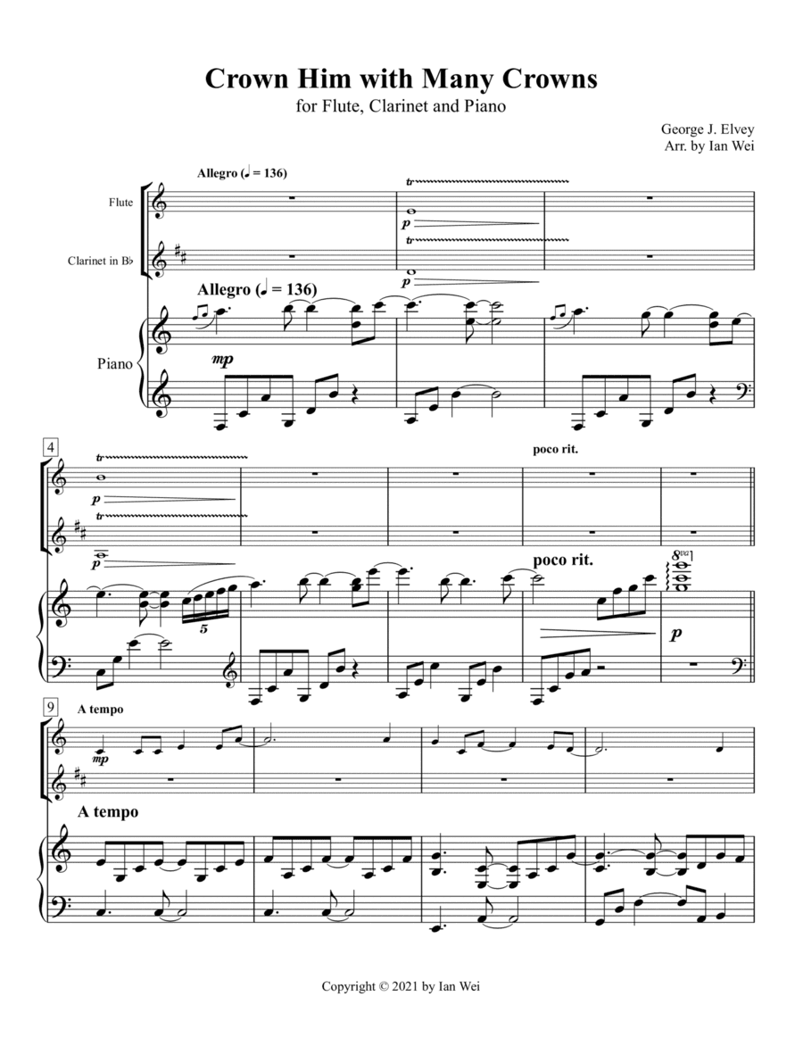 Crown Him with Many Crowns for Flute, Clarinet and Piano (arr. Ian Wei)
