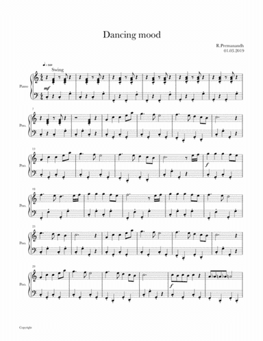 Piano Solo - Level 2 - Digital Download SKU: A0.921380 Composed by R.Premanandh. Arranged by R,Premanandh. Children,Classical,Country,Holiday,Instructional. Score. 5 pages. Premanandh .R #4338327. Published by Premanandh .R (A0.921380). This product was created by a member of ArrangeMe, Hal Leonard's global self-publishing community of independent composers, arrangers, and songwriters. ArrangeMe allows for the publication of unique arrangements of popular titles and original compositions from a variety of voices and backgrounds. The length, difficulty, and retail pricing are determined solely by the discretion of the person who arranged or composed it. About Digital Downloads Digital Downloads are downloadable sheet music files that can be viewed directly on your computer, tablet or mobile device. Once you download your digital sheet music, you can view and print it at home, school, or anywhere you want to make music, and you don’t have to be connected to the internet. Just purchase, download and play! PLEASE NOTE: Your Digital Download will have a watermark at the bottom of each page that will include your name, purchase date and number of copies purchased. You are only authorized to print the number of copies that you have purchased. You may not digitally distribute or print more copies than purchased for use (i.e., you may not print or digitally distribute individual copies to friends or students).
