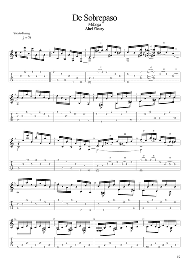 Guitar - Level 3 - Digital Download SKU: A0.820662 Composed by Jorge Cardoso. Arranged by Kenneth Pasciak. Classical,Folk,Latin,Multicultural,World. Guitar Tab. 8 pages. Kenneth Pasciak #6708729. Published by Kenneth Pasciak (A0.820662). ....................Milonga by Argentine guitarist and composer Jorge Cardoso. Includes 4-page sheet music score with tablature and detailed fingering suggestions plus 2-page individual guitar part without tab. Kenneth Pasciak Music Publishing, ASCAPkenpasciak.comhttps://linktr.ee/kp_sheetmusic/.................... This product was created by a member of ArrangeMe, Hal Leonard's global self-publishing community of independent composers, arrangers, and songwriters. ArrangeMe allows for the publication of unique arrangements of popular titles and original compositions from a variety of voices and backgrounds. The length, difficulty, and retail pricing are determined solely by the discretion of the person who arranged or composed it. About Digital Downloads Digital Downloads are downloadable sheet music files that can be viewed directly on your computer, tablet or mobile device. Once you download your digital sheet music, you can view and print it at home, school, or anywhere you want to make music, and you don’t have to be connected to the internet. Just purchase, download and play! PLEASE NOTE: Your Digital Download will have a watermark at the bottom of each page that will include your name, purchase date and number of copies purchased. You are only authorized to print the number of copies that you have purchased. You may not digitally distribute or print more copies than purchased for use (i.e., you may not print or digitally distribute individual copies to friends or students).