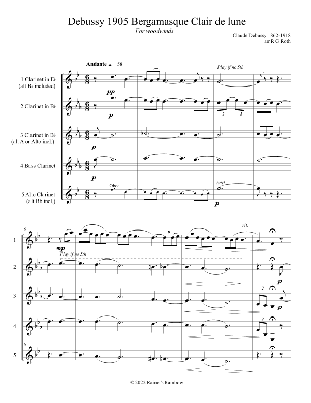 Debussy 1905 Clair de lune (arr. R G Roth)