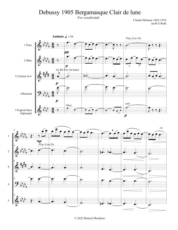 Debussy 1905 Clair de lune (arr. R G Roth)