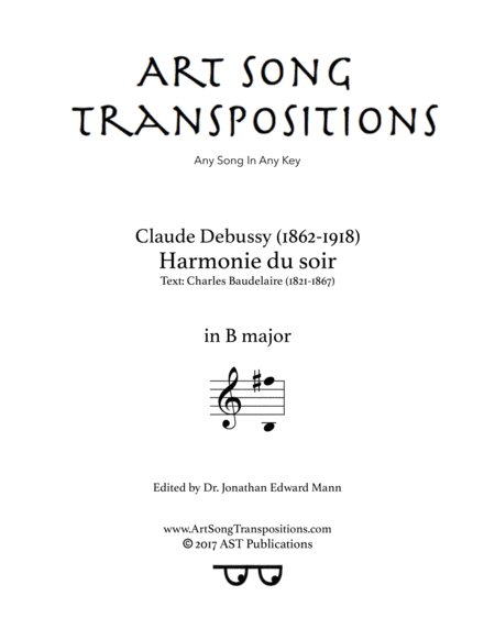 DEBUSSY: Harmonie du soir (transposed to B major) (arr. ArtSongTranspositions.com)