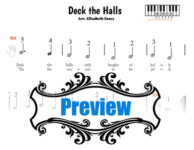 Easy Piano - Level 1 - Digital Download SKU: A0.920569 Composed by Tradiational, Christmas Song. Arranged by Elizabeth Essex. Christmas,Praise & Worship,Sacred. Score. 5 pages. Elizabeth Essex #6618957. Published by Elizabeth Essex (A0.920569). 'Deck the Halls' - Pre-reader Combo pack - 1 page EACH Pre-staff arrangement - for the newest young beginners who know finger numbers and can find correct hand position using the illustration. 1 page Pre-staff Alpha Note arrangement - for young beginners who know the letter names of the keys and can find correct hand position using the illustration. 1 page Preschool. Alpha-notes. Pre-staff / prestaff, pre-reader / prereader, pre-reading / prereading. See my other arrangements: Sheet Music Press (copyrighted music available) Sheet Music Direct (copyrighted music available)Top Music Marketplace (piano studio licenses available)Teachers Pay Teachers (classroom licenses available)To commission an arrangement or set up Zoom piano or art lessons, contact Elizabeth: https://elizabethmusicnarts.wordpress.com This product was created by a member of ArrangeMe, Hal Leonard’s global self-publishing community of independent composers, arrangers, and songwriters. ArrangeMe allows for the publication of unique arrangements of both popular titles and original compositions from a wide variety of voices and backgrounds. About Digital Downloads Digital Downloads are downloadable sheet music files that can be viewed directly on your computer, tablet or mobile device. Once you download your digital sheet music, you can view and print it at home, school, or anywhere you want to make music, and you don’t have to be connected to the internet. Just purchase, download and play! PLEASE NOTE: Your Digital Download will have a watermark at the bottom of each page that will include your name, purchase date and number of copies purchased. You are only authorized to print the number of copies that you have purchased. You may not digitally distribute or print more copies than purchased for use (i.e., you may not print or digitally distribute individual copies to friends or students).