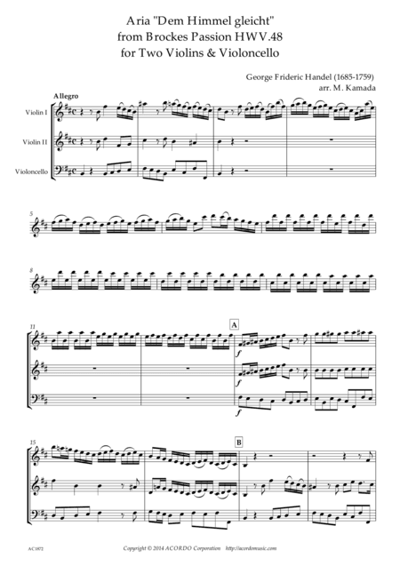 'Dem Himmel gliecht' from Brockes Passion HWV.48 for Two Violins & Violoncello (arr. Mikio Kamada)