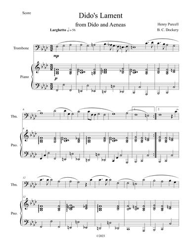 Digital Sheet Music for Dido's Lament - Trombone by Henry Purcell, Jack Clay scored for Brass Quintet; id:312686