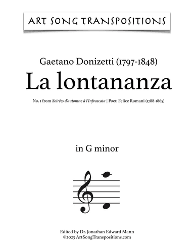 Piano,Vocal,Voice - Digital Download SKU: A0.1305744 Composed by Gaetano Donizetti. Arranged by ArtSongTranspositions.com. Romantic Period. Score. 4 pages. AST Publications, LLC #895185. Published by AST Publications, LLC (A0.1305744). ⇨ PAY $0.00 with INSTITUTIONAL MEMBERSHIP✓ 10,000+ art songs and Baroque aria PDFs✓ Transpose sheet music to any key✓ Free for faculty, students, staff, and employees✓ Campus-wide access via IP authentication✓ Off-campus access via EZproxy or SAML This product was created by a member of ArrangeMe, Hal Leonard’s global self-publishing community of independent composers, arrangers, and songwriters. ArrangeMe allows for the publication of unique arrangements of both popular titles and original compositions from a wide variety of voices and backgrounds. About Digital Downloads Digital Downloads are downloadable sheet music files that can be viewed directly on your computer, tablet or mobile device. Once you download your digital sheet music, you can view and print it at home, school, or anywhere you want to make music, and you don’t have to be connected to the internet. Just purchase, download and play! PLEASE NOTE: Your Digital Download will have a watermark at the bottom of each page that will include your name, purchase date and number of copies purchased. You are only authorized to print the number of copies that you have purchased. You may not digitally distribute or print more copies than purchased for use (i.e., you may not print or digitally distribute individual copies to friends or students).