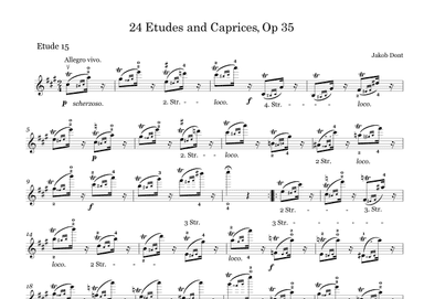 Violin Solo - Level 5 - Digital Download SKU: A0.961857 Composed by Jakob Dont. Arranged by String Masters. Classical. 1 pages. String Masters #567568. Published by String Masters (A0.961857). This product was created by a member of ArrangeMe, Hal Leonard's global self-publishing community of independent composers, arrangers, and songwriters. ArrangeMe allows for the publication of unique arrangements of popular titles and original compositions from a variety of voices and backgrounds. The length, difficulty, and retail pricing are determined solely by the discretion of the person who arranged or composed it. About Digital Downloads Digital Downloads are downloadable sheet music files that can be viewed directly on your computer, tablet or mobile device. Once you download your digital sheet music, you can view and print it at home, school, or anywhere you want to make music, and you don’t have to be connected to the internet. Just purchase, download and play! PLEASE NOTE: Your Digital Download will have a watermark at the bottom of each page that will include your name, purchase date and number of copies purchased. You are only authorized to print the number of copies that you have purchased. You may not digitally distribute or print more copies than purchased for use (i.e., you may not print or digitally distribute individual copies to friends or students).