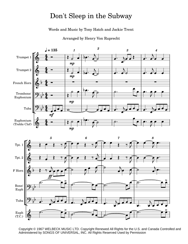 Don't Sleep In The Subway (arr. Henry Von Ruprecht)