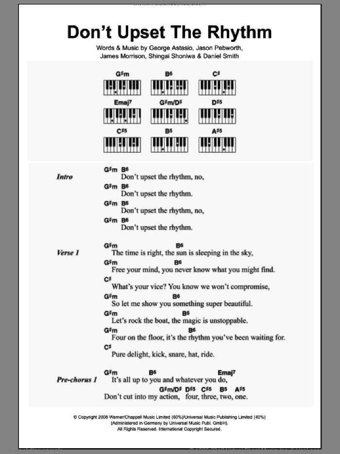 Digital sheet music for piano (chords, lyrics, melody)NOTE: piano chords only, lyrics and melody may be included (please, check the first page above before to buy this item to see what's included)Publisher: Hal LeonardContributors to this music title:Daniel Smith (writer)George Astasio (writer)James Morrison (writer)Jason Pebworth (writer)Shingai Shoniwa (writer)This item includes: PDF (digital sheet music to download and print)Instrumentation:piano solo (chords, lyrics, melody)Skill Level:intermediateGenre:pop, rockPages:4