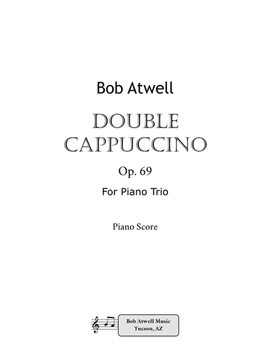 Piano Trio - Level 5 - Digital Download SKU: A0.1106400 Composed by Bob Atwell. 20th Century,Chamber,Contemporary. 40 pages. Bob Atwell Music #705459. Published by Bob Atwell Music (A0.1106400). A challenging work for Piano Trio. It is a light humorous work in three 2 minute sections: Espresso, Milk, and Foam. This product was created by a member of ArrangeMe, Hal Leonard’s global self-publishing community of independent composers, arrangers, and songwriters. ArrangeMe allows for the publication of unique arrangements of both popular titles and original compositions from a wide variety of voices and backgrounds. About Digital Downloads Digital Downloads are downloadable sheet music files that can be viewed directly on your computer, tablet or mobile device. Once you download your digital sheet music, you can view and print it at home, school, or anywhere you want to make music, and you don’t have to be connected to the internet. Just purchase, download and play! PLEASE NOTE: Your Digital Download will have a watermark at the bottom of each page that will include your name, purchase date and number of copies purchased. You are only authorized to print the number of copies that you have purchased. You may not digitally distribute or print more copies than purchased for use (i.e., you may not print or digitally distribute individual copies to friends or students).
