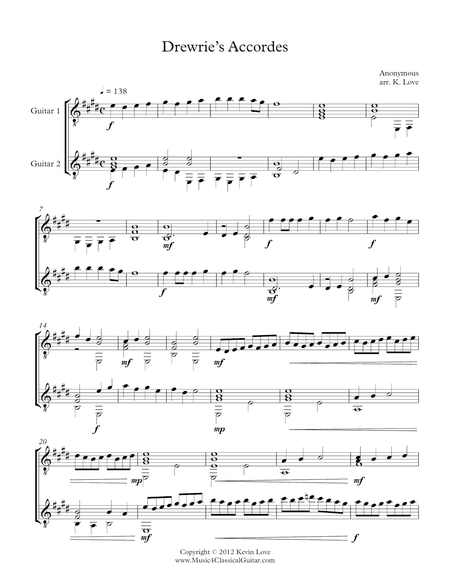 Drewrie's Accordes (Guitar Duo) - Score and Parts (arr. Kevin Love)