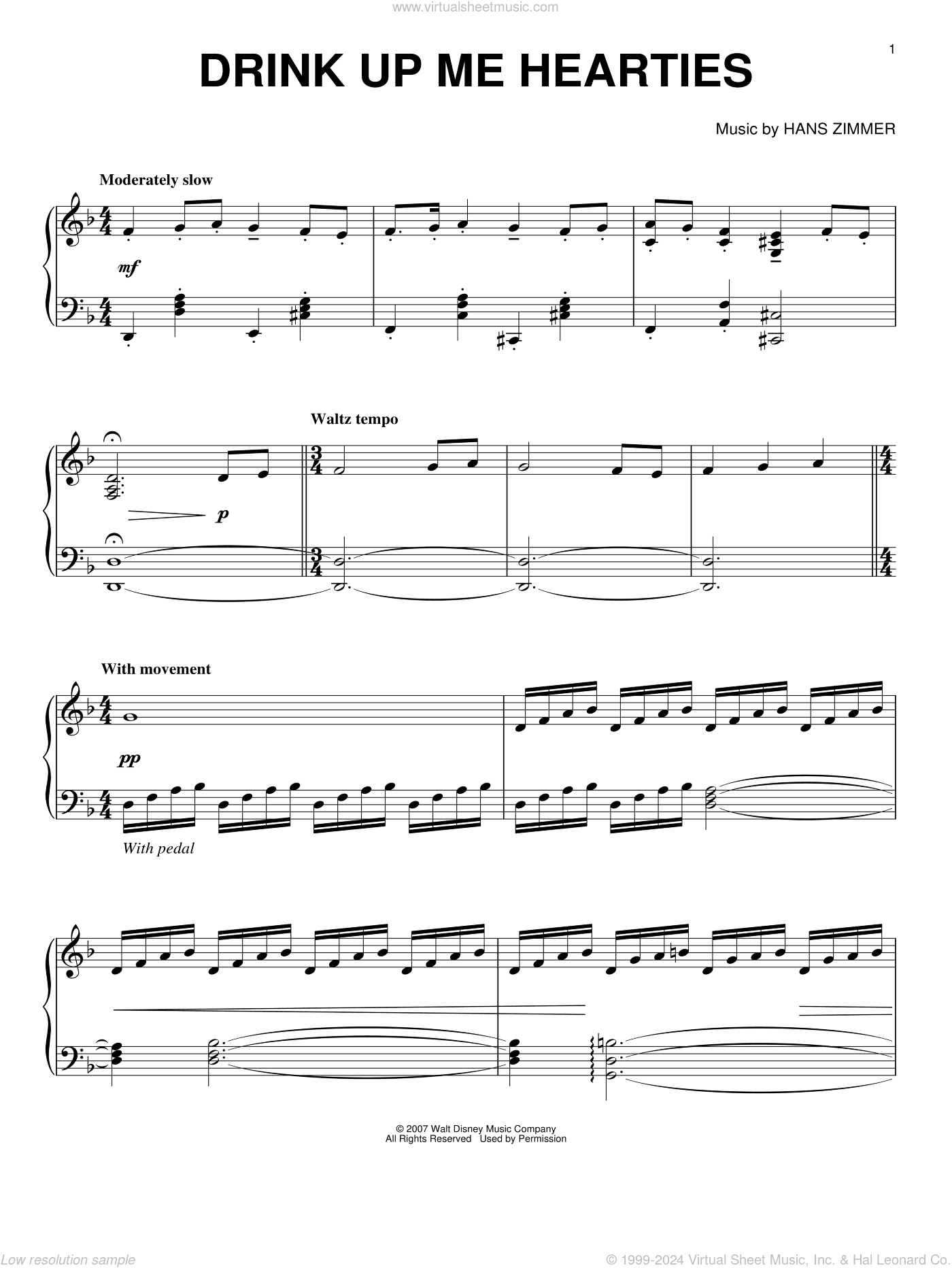 Instantly printable sheet music by Hans Zimmer for piano solo of MEDIUM skill level.