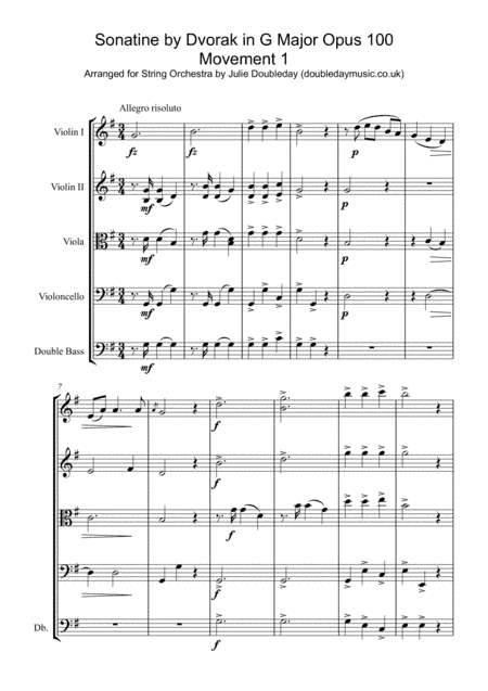 Dvorak Sonatine in G Major Opus 100 (1st Movement) arranged for String Orchestra (arr. Julie Doubleday)