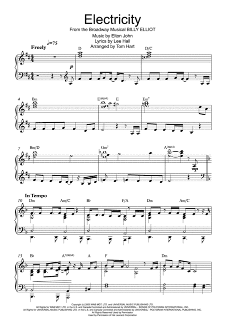 Electricity from the Broadway Musical BILLY ELLIOT (arr. Tom Hart)