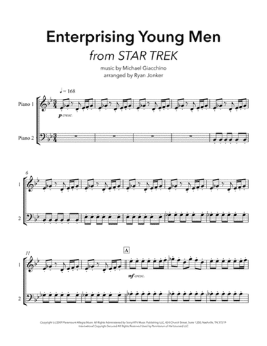 Small Ensemble Drum Set - Level 3 - Digital Download SKU: A0.856469 Composed by Michael Giacchino. Arranged by Reese Blaskowski. Film/TV. Score and parts. 18 pages. Reese Blaskowski #3488559. Published by Reese Blaskowski (A0.856469). Michael Giacchino's new theme from Star Trek (2009), "Enterprising Young Men", arranged for Brass Quintet by Reese Blaskowski.https://www.youtube.com/watch?v=nw2Njp3K44c This product was created by a member of ArrangeMe, Hal Leonard's global self-publishing community of independent composers, arrangers, and songwriters. ArrangeMe allows for the publication of unique arrangements of popular titles and original compositions from a variety of voices and backgrounds. The length, difficulty, and retail pricing are determined solely by the discretion of the person who arranged or composed it. About Digital Downloads Digital Downloads are downloadable sheet music files that can be viewed directly on your computer, tablet or mobile device. Once you download your digital sheet music, you can view and print it at home, school, or anywhere you want to make music, and you don’t have to be connected to the internet. Just purchase, download and play! PLEASE NOTE: Your Digital Download will have a watermark at the bottom of each page that will include your name, purchase date and number of copies purchased. You are only authorized to print the number of copies that you have purchased. You may not digitally distribute or print more copies than purchased for use (i.e., you may not print or digitally distribute individual copies to friends or students).