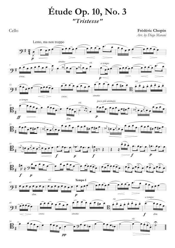Etude Op. 10, No. 3 for Cello & Piano (arr. Diego Marani)