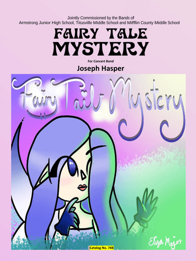 Concert Band - Level 3 - Digital Download SKU: A0.1153133 Composed by Joseph Hasper. Contemporary,Contest,Festival,Instructional. Score and parts. 54 pages. Joseph Hasper #753374. Published by Joseph Hasper (A0.1153133). What happens when you put a beautiful princess, a handsome prince, and an evil troll together? Fairy Tale Mystery is the magical story of these characters set in a long ago and faraway place. See if you can follow the story as the band plays! This piece was jointly commissioned and premiered by the following bands: Armstrong Junior High School, under the direction of Rob Reams; Titusville Middle School, under the direction of Patrick Vetter; Mifflin County Middle School, under the direction of Samantha Gates. The title Fairy Tale Mystery is a combination of ideas submitted by students from each of the schools. The cover art was designed by Armstrong Jr. HS student Eliza Major. IF YOU PERFORM THIS PIECE IN PUBLIC Please let me know! I would love to hear from you (and would be super happy to display a copy of your concert program or poster in my office!). I would also be happy to answer any questions you have about the piece, whether it’s about interpretation, notation, or anything else. This product was created by a member of ArrangeMe, Hal Leonard's global self-publishing community of independent composers, arrangers, and songwriters. ArrangeMe allows for the publication of unique arrangements of popular titles and original compositions from a variety of voices and backgrounds. The length, difficulty, and retail pricing are determined solely by the discretion of the person who arranged or composed it. About Digital Downloads Digital Downloads are downloadable sheet music files that can be viewed directly on your computer, tablet or mobile device. Once you download your digital sheet music, you can view and print it at home, school, or anywhere you want to make music, and you don’t have to be connected to the internet. Just purchase, download and play! PLEASE NOTE: Your Digital Download will have a watermark at the bottom of each page that will include your name, purchase date and number of copies purchased. You are only authorized to print the number of copies that you have purchased. You may not digitally distribute or print more copies than purchased for use (i.e., you may not print or digitally distribute individual copies to friends or students).