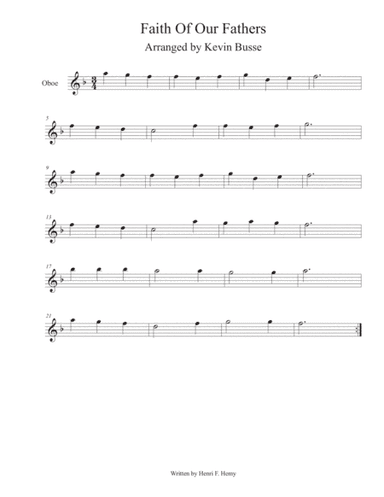 Oboe,Piano - Level 3 - Digital Download SKU: A0.786630 Composed by Frederick William Faber, Henri F. Hemy, and J. G. Walton. Arranged by Beka Wilson. Christian,Holiday,Patriotic,Sacred. Score and part. 6 pages. Beka Wilson #6329147. Published by Beka Wilson (A0.786630). This is an intermediate-level arrangement of a beloved hymn--perfect for a church offertory or prelude. It could also be an occasion song for Father's Day, Independence Day, Memorial Day, or Veterans Day. This arrangement is available as a solo for voice, piano, flute, oboe, clarinet, bassoon, alto sax, tenor sax, F horn, trumpet, trombone, violin, viola, and cello. It is also available for SATB choir.Length: 3-3.5 minutesLevel: intermediate for most instruments6 pages (includes score and separate solo part)Want this arrangement in a different key or for a different set of instruments? Shoot me an email at [email protected] for a custom version of this arrangement that I can post on Sheet Music Plus for you. This product was created by a member of ArrangeMe, Hal Leonard's global self-publishing community of independent composers, arrangers, and songwriters. ArrangeMe allows for the publication of unique arrangements of popular titles and original compositions from a variety of voices and backgrounds. The length, difficulty, and retail pricing are determined solely by the discretion of the person who arranged or composed it. About Digital Downloads Digital Downloads are downloadable sheet music files that can be viewed directly on your computer, tablet or mobile device. Once you download your digital sheet music, you can view and print it at home, school, or anywhere you want to make music, and you don’t have to be connected to the internet. Just purchase, download and play! PLEASE NOTE: Your Digital Download will have a watermark at the bottom of each page that will include your name, purchase date and number of copies purchased. You are only authorized to print the number of copies that you have purchased. You may not digitally distribute or print more copies than purchased for use (i.e., you may not print or digitally distribute individual copies to friends or students).