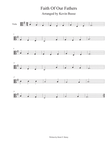Piano,Viola - Level 3 - Digital Download SKU: A0.786628 Composed by Frederick William Faber, Henri F. Hemy, and J. G. Walton. Arranged by Beka Wilson. Christian,Holiday,Patriotic,Sacred. Score and part. 6 pages. Beka Wilson #6329133. Published by Beka Wilson (A0.786628). This is an intermediate-level arrangement of a beloved hymn--perfect for a church offertory or prelude. It could also be an occasion song for Father's Day, Independence Day, Memorial Day, or Veterans Day. This arrangement is available as a solo for voice, piano, flute, oboe, clarinet, bassoon, alto sax, tenor sax, F horn, trumpet, trombone, violin, viola, and cello. It is also available for SATB choir.Length: 3-3.5 minutesLevel: intermediate for most instruments6 pages (includes score and separate solo part)Want this arrangement in a different key or for a different set of instruments? Shoot me an email at [email protected] for a custom version of this arrangement that I can post on Sheet Music Plus for you. This product was created by a member of ArrangeMe, Hal Leonard's global self-publishing community of independent composers, arrangers, and songwriters. ArrangeMe allows for the publication of unique arrangements of popular titles and original compositions from a variety of voices and backgrounds. The length, difficulty, and retail pricing are determined solely by the discretion of the person who arranged or composed it. About Digital Downloads Digital Downloads are downloadable sheet music files that can be viewed directly on your computer, tablet or mobile device. Once you download your digital sheet music, you can view and print it at home, school, or anywhere you want to make music, and you don’t have to be connected to the internet. Just purchase, download and play! PLEASE NOTE: Your Digital Download will have a watermark at the bottom of each page that will include your name, purchase date and number of copies purchased. You are only authorized to print the number of copies that you have purchased. You may not digitally distribute or print more copies than purchased for use (i.e., you may not print or digitally distribute individual copies to friends or students).
