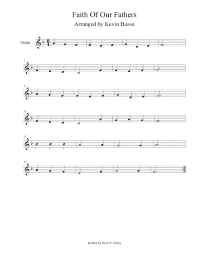 Piano,Violin - Level 3 - Digital Download SKU: A0.786625 Composed by Frederick William Faber, Henri F. Hemy, and J. G. Walton. Arranged by Beka Wilson. Christian,Holiday,Patriotic,Sacred. 6 pages. Beka Wilson #6329129. Published by Beka Wilson (A0.786625). This is an intermediate-level arrangement of a beloved hymn--perfect for a church offertory or prelude. It could also be an occasion song for Father's Day, Independence Day, Memorial Day, or Veterans Day. This arrangement is available as a solo for voice, piano, flute, oboe, clarinet, bassoon, alto sax, tenor sax, F horn, trumpet, trombone, violin, viola, and cello. It is also available for SATB choir.Length: 3-3.5 minutesLevel: intermediate for most instruments6 pages (includes score and separate solo part)Want this arrangement in a different key or for a different set of instruments? Shoot me an email at [email protected] for a custom version of this arrangement that I can post on Sheet Music Plus for you. This product was created by a member of ArrangeMe, Hal Leonard’s global self-publishing community of independent composers, arrangers, and songwriters. ArrangeMe allows for the publication of unique arrangements of both popular titles and original compositions from a wide variety of voices and backgrounds. About Digital Downloads Digital Downloads are downloadable sheet music files that can be viewed directly on your computer, tablet or mobile device. Once you download your digital sheet music, you can view and print it at home, school, or anywhere you want to make music, and you don’t have to be connected to the internet. Just purchase, download and play! PLEASE NOTE: Your Digital Download will have a watermark at the bottom of each page that will include your name, purchase date and number of copies purchased. You are only authorized to print the number of copies that you have purchased. You may not digitally distribute or print more copies than purchased for use (i.e., you may not print or digitally distribute individual copies to friends or students).