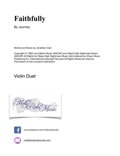 String Orchestra - Level 4 - Digital Download SKU: A0.916883 By Journey. By Jonathan Cain. Arranged by Eric Stern. Rock. Score and parts. 18 pages. Nerds of Paradise Music #4890271. Published by Nerds of Paradise Music (A0.916883). "Faithfully" is a song by American rock band Journey, and the second single from their album Frontiers. The song was written by keyboardist Jonathan Cain. It peaked at number 12 on the Billboard Hot 100, giving the band their second consecutive top-twenty hit from Frontiers. Despite featuring no chorus, it has gone on to become one of the band's most recognizable hits and has enjoyed lasting popularity. In a Classic Rock article, "Faithfully" was called the greatest power ballad ever recorded. This product was created by a member of ArrangeMe, Hal Leonard's global self-publishing community of independent composers, arrangers, and songwriters. ArrangeMe allows for the publication of unique arrangements of popular titles and original compositions from a variety of voices and backgrounds. The length, difficulty, and retail pricing are determined solely by the discretion of the person who arranged or composed it. About Digital Downloads Digital Downloads are downloadable sheet music files that can be viewed directly on your computer, tablet or mobile device. Once you download your digital sheet music, you can view and print it at home, school, or anywhere you want to make music, and you don’t have to be connected to the internet. Just purchase, download and play! PLEASE NOTE: Your Digital Download will have a watermark at the bottom of each page that will include your name, purchase date and number of copies purchased. You are only authorized to print the number of copies that you have purchased. You may not digitally distribute or print more copies than purchased for use (i.e., you may not print or digitally distribute individual copies to friends or students).