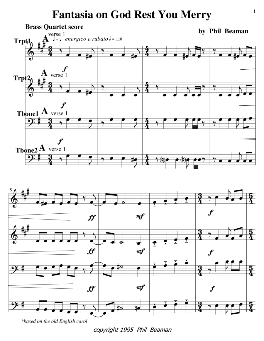 Fantasia on God Rest You Merry - Brass Quartet 2 (arr. Phil Beaman)
