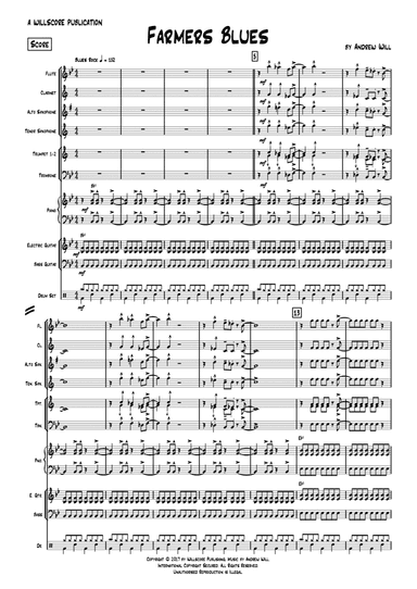 Alto Saxophone,Bass Guitar,Clarinet,Drum Set,Flute,Piano,Tenor Saxophone,Trombone,Trumpet - Level 1 - Digital Download SKU: A0.983114 Composed by Andrew Will. Blues. 30 pages. Andrew Will #6562699. Published by Andrew Will (A0.983114). An easy blues song for the development of beginning musicians. Suitable for students in their second to third year of musical training. Written for flute, clarinet, alto saxophone, tenor saxophone, trumpet 1-2, trombone, piano, guitar, bass guitar and drum kit. Based on the concert Bb Blues scale in a blues/rock style. Enjoy! This product was created by a member of ArrangeMe, Hal Leonard's global self-publishing community of independent composers, arrangers, and songwriters. ArrangeMe allows for the publication of unique arrangements of popular titles and original compositions from a variety of voices and backgrounds. The length, difficulty, and retail pricing are determined solely by the discretion of the person who arranged or composed it. About Digital Downloads Digital Downloads are downloadable sheet music files that can be viewed directly on your computer, tablet or mobile device. Once you download your digital sheet music, you can view and print it at home, school, or anywhere you want to make music, and you don’t have to be connected to the internet. Just purchase, download and play! PLEASE NOTE: Your Digital Download will have a watermark at the bottom of each page that will include your name, purchase date and number of copies purchased. You are only authorized to print the number of copies that you have purchased. You may not digitally distribute or print more copies than purchased for use (i.e., you may not print or digitally distribute individual copies to friends or students).