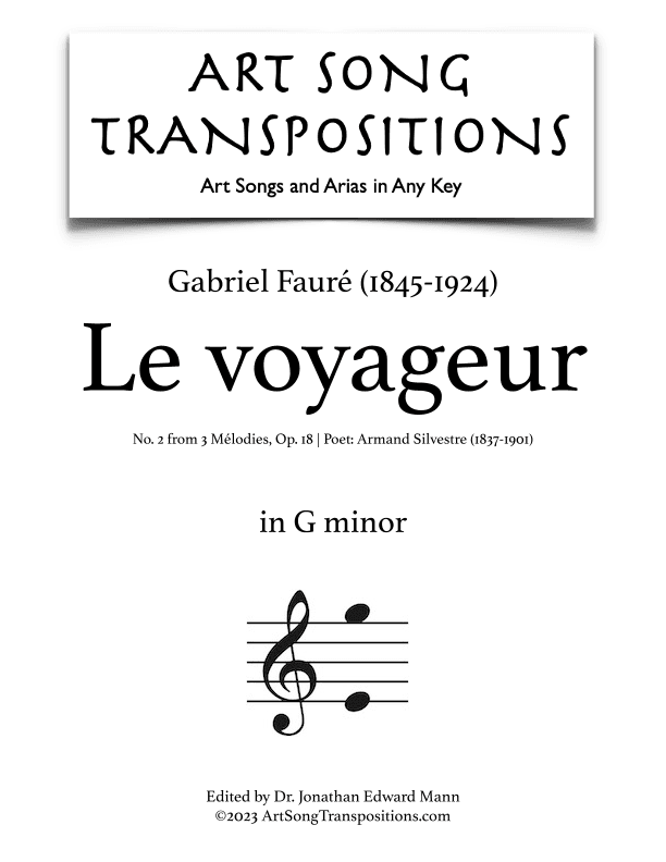 FAURÉ: Le voyageur, Op. 18 no. 2 (transposed to G minor) (arr. ArtSongTranspositions.com)
